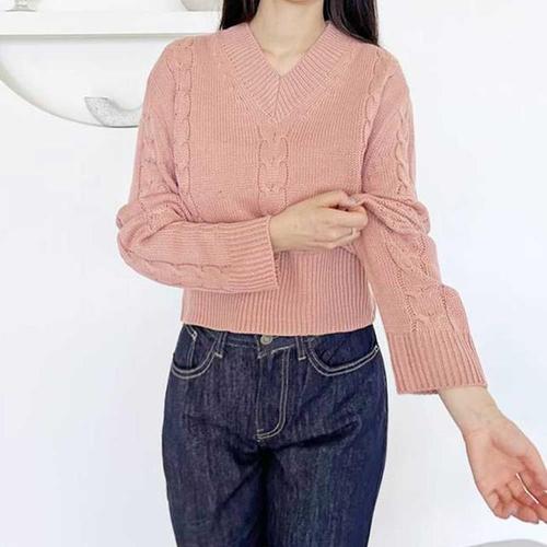 [주식회사 브이와이][JHQRJKVE_4B]브이넥 여성 여성카라니트 꽈배기 데일리 (24152750A)