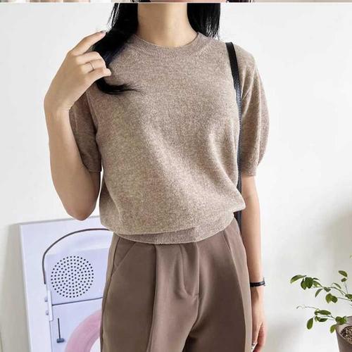 [주식회사 브이와이][JHQRJKVC_4B]반팔 카라니트 라운드넥 캐시미어 퍼프디자인 (24152696A)