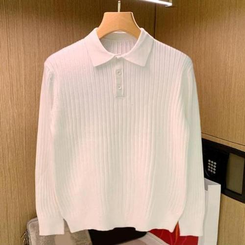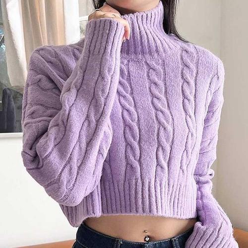 [주식회사 브이와이][JHQRJKVB_4B]크롭기장 카라니트 여성 꽈배기짜임 니트티 (24152652A)