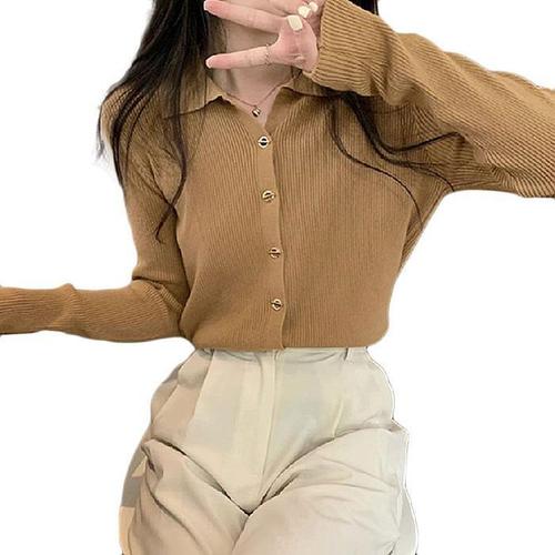 [주식회사 브이와이][JHQRB8LP_4A]여자 니트집업 슬림핏 카라 데일리룩 (22304842A)