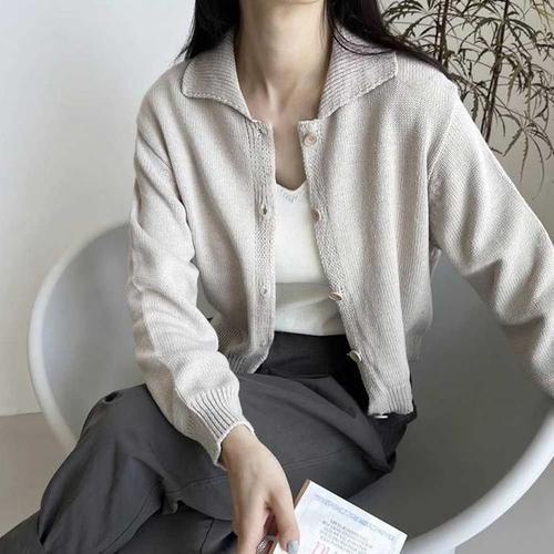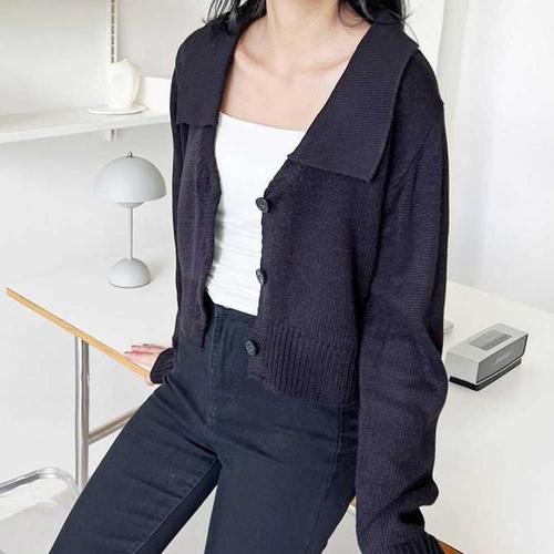 [주식회사 브이와이][JHQRJKVL_4B]3단추 가디건 카라가디건 여성 카라 크롭 (24153033A)
