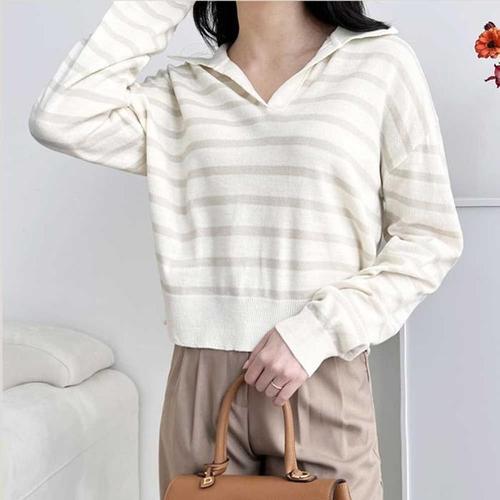 [주식회사 브이와이][JHQRZJ5S_4A]가을코디 카라 투버튼 여름옷 스트라이프니트 (22350100A)