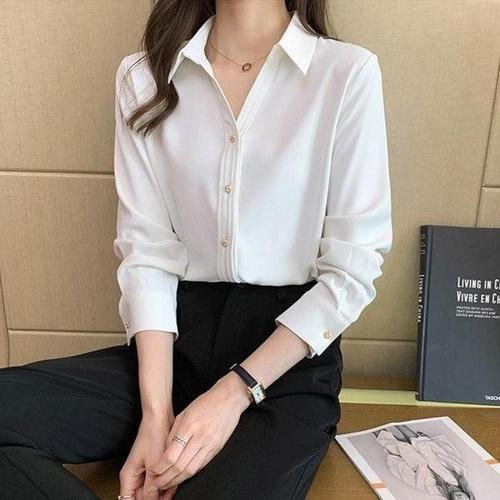 비아이와이 여성 봄 가을 카라넥 긴팔 셔츠 오피스룩 D23