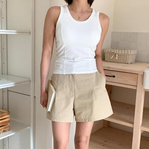 [브이와이][VY] 여자 단추 SS 골지 라운드 패드 컷오프 브라탑 끈나시_16597969_588847