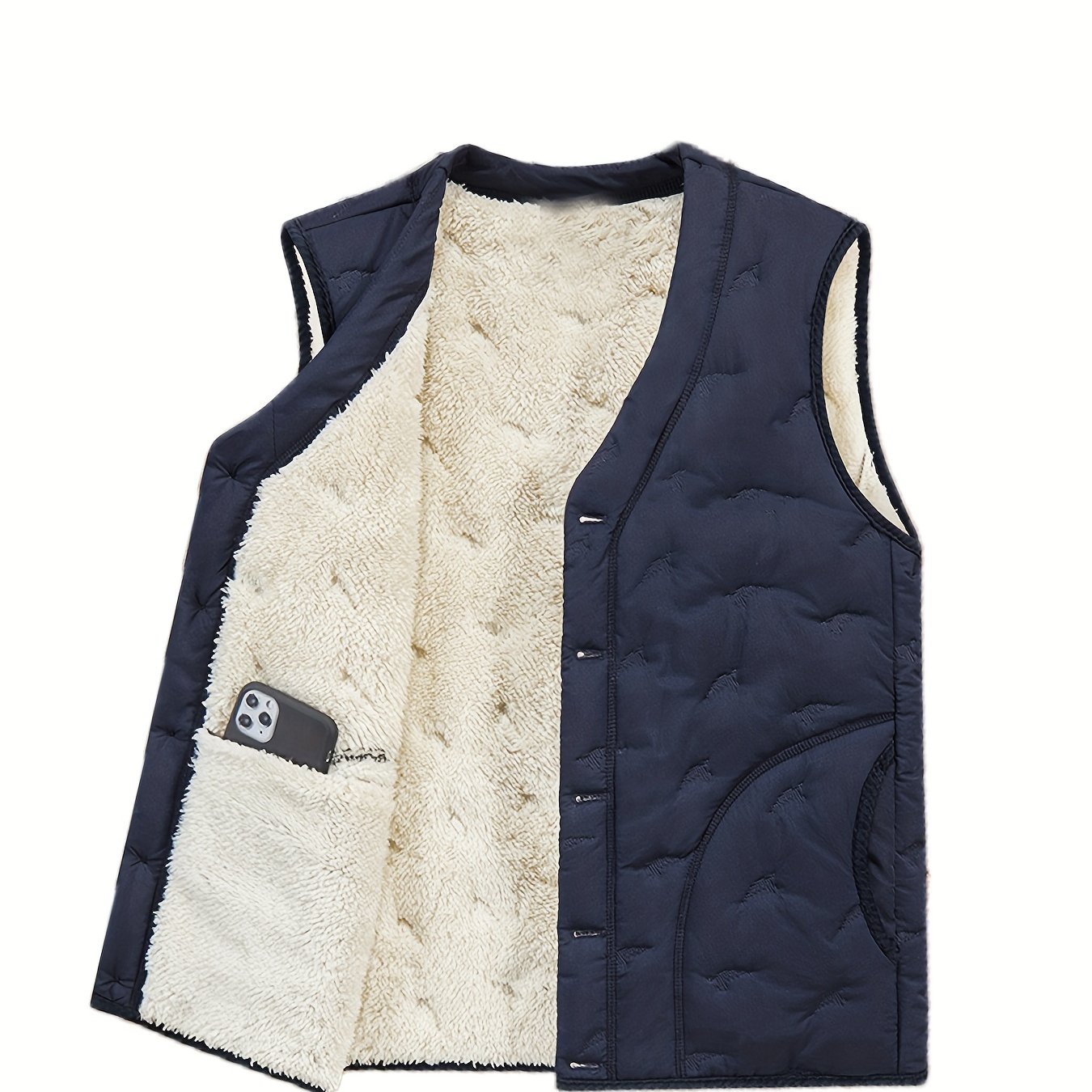 TEMU 남성용 플러시 안감 단색 조끼 - 트렌디하고 스타일리시한 두꺼운 따뜻한 조끼 겨울용 야외 옷