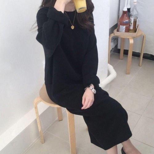 [오너클랜]인기상품 여성 겨울 봄 가을 심플 무지 니트 롱원피스 하객용 블랙 니트원피스 [WFLI16F_260227]