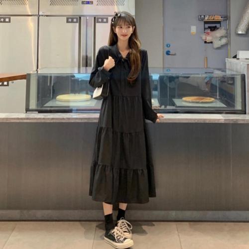 [오너클랜]인기상품 긴팔 리본 캉캉 롱원피스 스트링원피스 캉캉원피스 블랙 [WFK3MSC_260107]