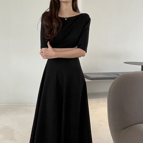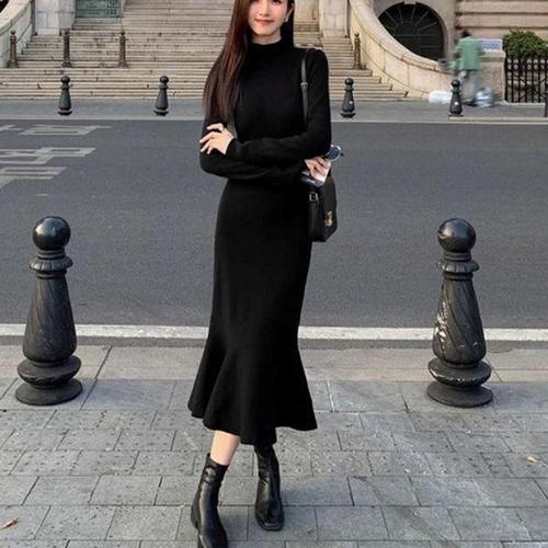 [셀러허브_여성트랜드패션]ONM 여성 반폴라 머미에드 롱원피스 블랙 1P 핏