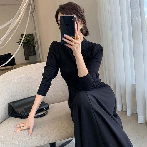 [디작소]여성 가을 겨울 하이엔드 블랙 롱원피스