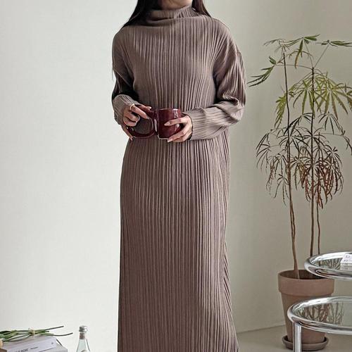 [샵앤][샵앤] 국산 여성 하이넥 플리츠 주름 긴팔 롱원피스 LL-WDR-4928-블랙
