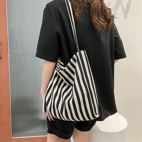 [주식회사 브이와이][JHQRU5JQ_4A]스트라이프 에코백(블랙) 캔버스백 캔버스백 (22623280A)