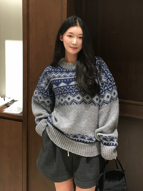 [망고매니플리즈] 하티 노르딕 니트 (그레이블루)