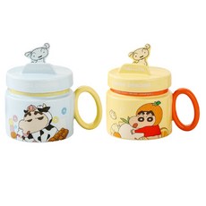 StarR 짱구 세라믹 뚜껑 머그컵 2개입, 1개, 블루 + 옐로