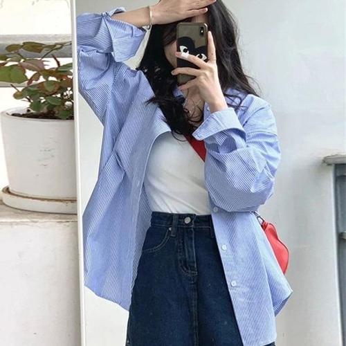 [HYIJUNTC_4B]G126676_블루스트라이프 루즈핏 셔츠 남방