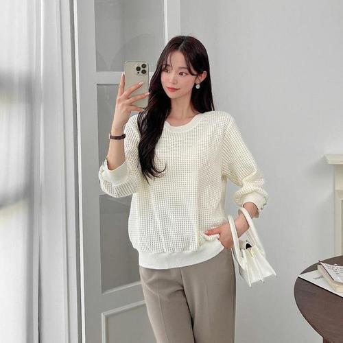 [다잇템]여자 큐브 딥블루 위빙 가을출근룩 니트 (10749407A)