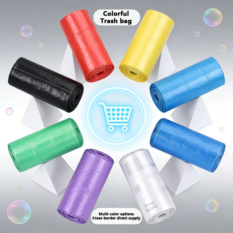 일회용 평평한 입구 쓰레기 봉투 롤형 신소재 두꺼워지고 강한 가정용 주방 침실용 컬러 쓰레기 봉투 45x50cm