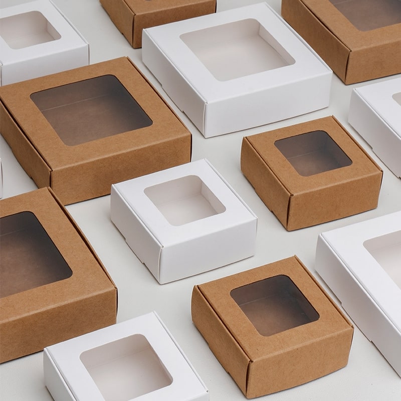 10pcs 사각형 화이트/크래프트/블랙 창 포장 상자, 다양한 크기, 결혼식 파티 선물, 수제 비누 초콜릿 플랫 상자
