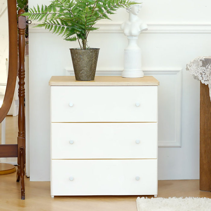 보노하우스 [비밀특가] 국내생산 마리 실버핸들 우드상판 서랍장 3단