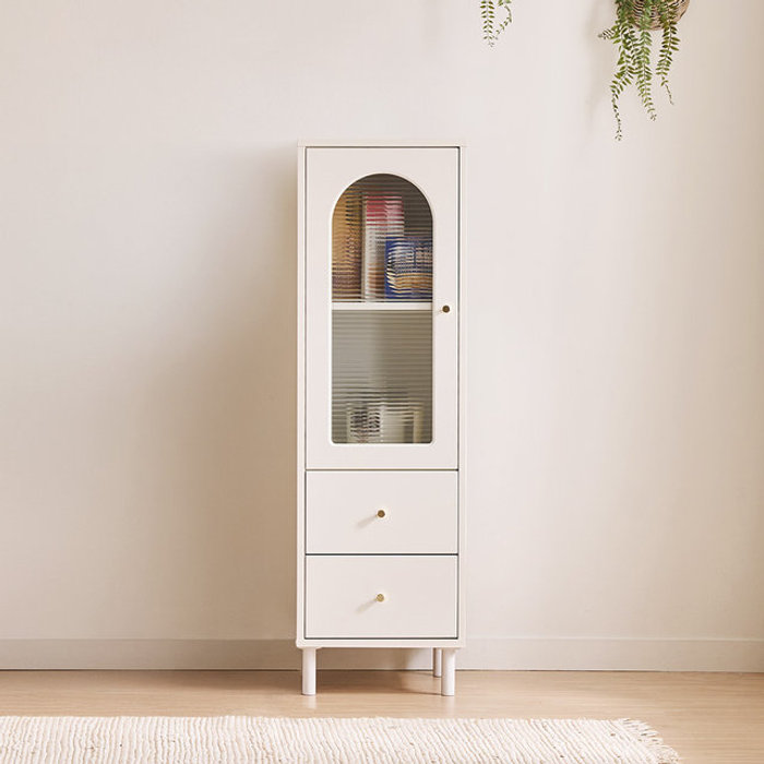 장인가구 [비밀특가] 장인가구 쿠르바 모루유리 400 2단서랍 그릇 주방 수납장 높은형