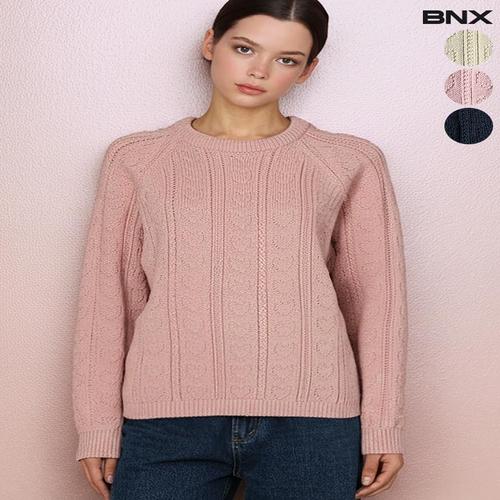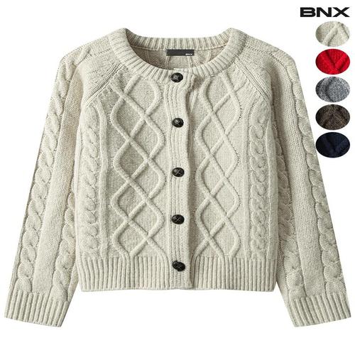 [비엔엑스]여성 케이블 짜임 라운드 가디건