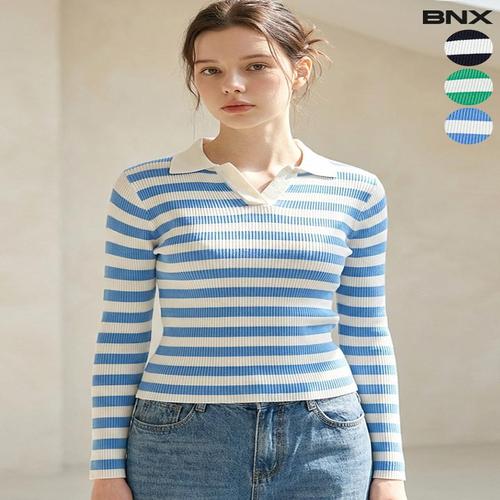 [비엔엑스]여성 슬림 골지 단가라 카라 니트