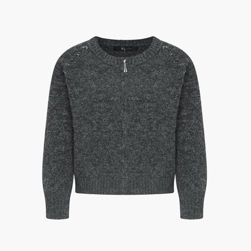 [나의셀렉] 비즈 패턴 포인트 그레이 라운드넥 니트 가디건