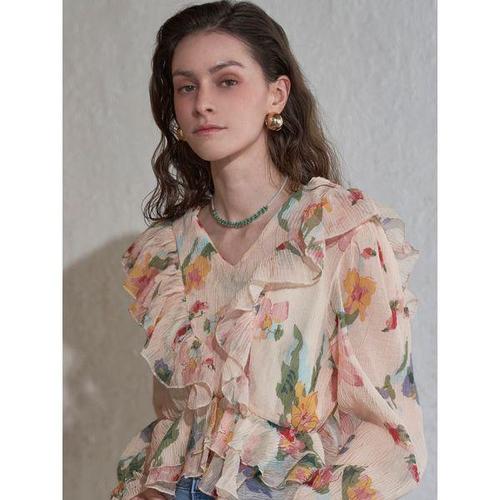[르니앤맥코이]플로랄 프릴 비즈 목걸이 세트 블라우스 MN05BL029HJY