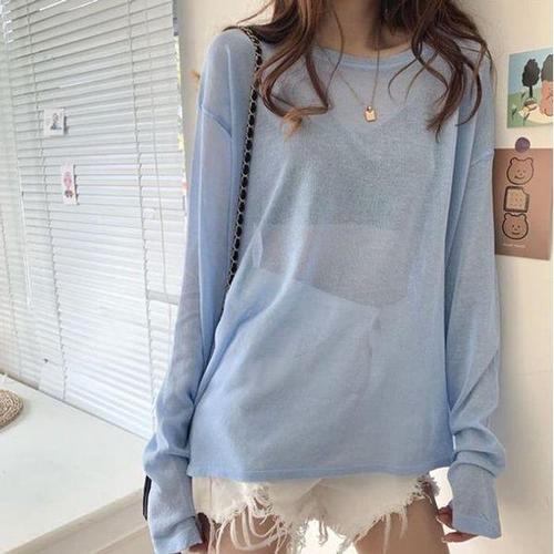 [셀러허브_여성트랜드패션]여성 티셔츠 비치웨어 시스루 루즈핏 레이어드 긴팔