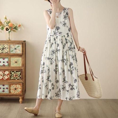 시원한 여름 휴양지 순면 민소매 나시 원피스