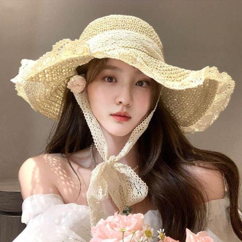 여성 쉐이드 턱끈 밀짚 모자 1P 휴양지 여름 비치 WFHF51J