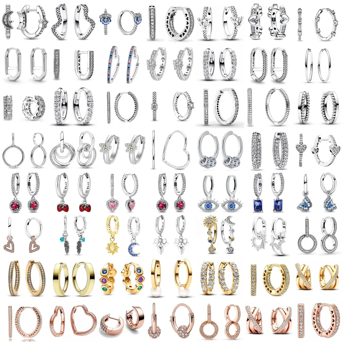 여성을위한 골드 컬러 실버 925 귀걸이 라운드 태양 달 하트 후프 귀걸이 오리지널 쥬얼리
