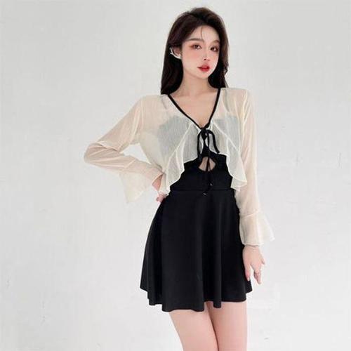 보니제이 / 레이스 프릴 언발 비키니 4피스 세트 가디건 스커트