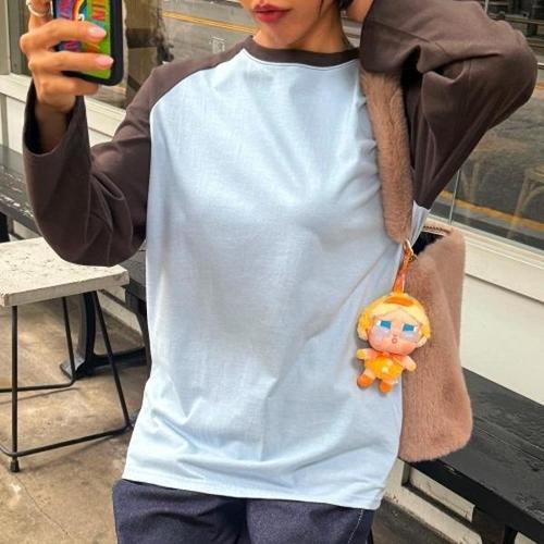 배색 나그랑 오버핏 긴팔 티셔츠 (KI007)