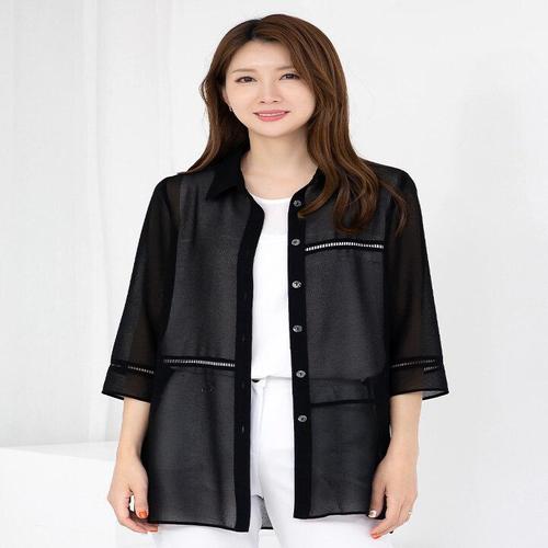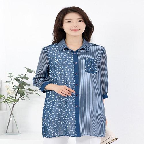 [모슬린]엄마옷 쉬폰 7부 카라롱 블라우스 613FGH452 마담/중년여성/빅사이즈/50대/60대
