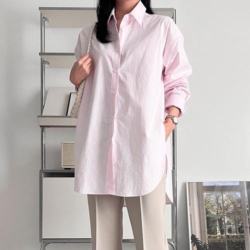 [옷자락]여자 언발 빅사이즈 카라넥 워싱 코튼 양트임 롱 셔츠