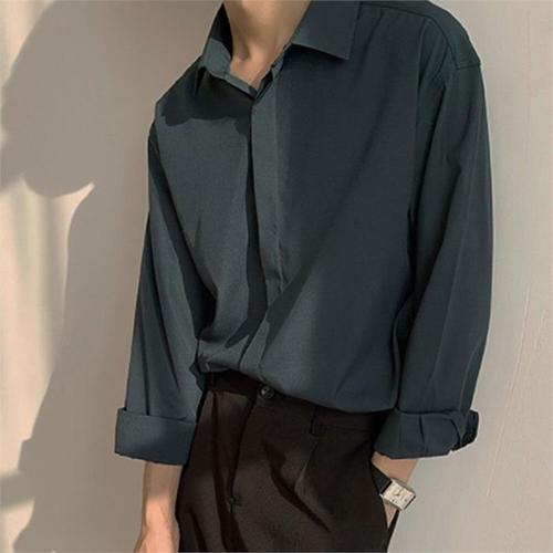 [다잇템]남자 무지 롱슬리브 히든버튼 빅사이즈 셔츠 (8134296A)