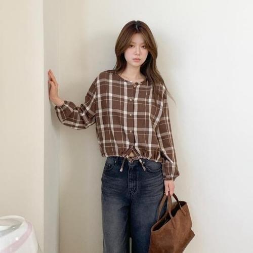 [다잇템][다잇템] 여성 밑단 롱슬리브 격자 빅사이즈 남방 면혼방 스트링_23329206_588872