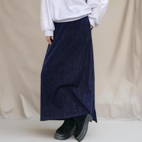 [미라클세븐]여성용 레이온 스웨이드 H라인 트임 롱스커트 캐주얼 스타일