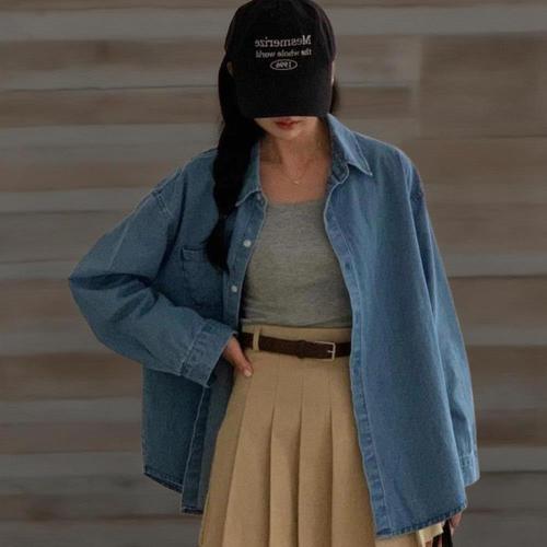 여성용 간절 데일리 빅사이즈 루즈핏 하프기장 데님 남방 긴팔 청셔츠