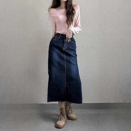나야홍 / 빅사이즈 504 썸데님양트임롱청치마 DLOB445