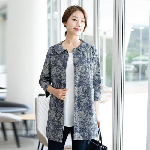 [모슬린]엄마옷 둥근카라 면 나염 자켓 613FGH358 마담/중년여성/빅사이즈/50대/60대