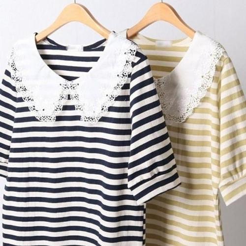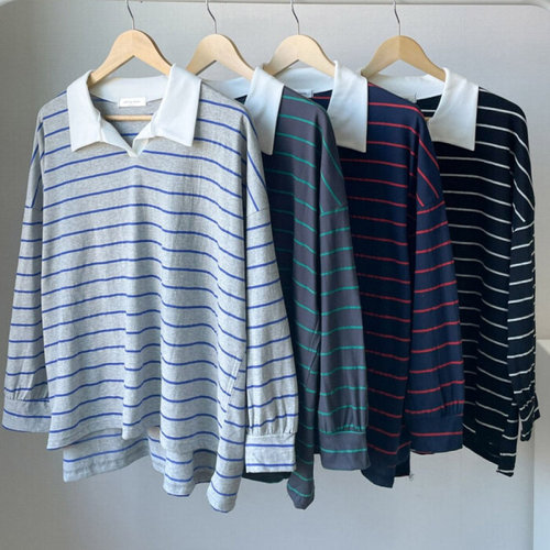 스트라이프 반집업 카라 맨투맨 티셔츠 루즈핏 여성 빅사이즈