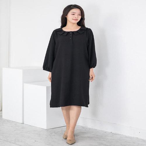 |KSO5A02|여성 배색 큰카라 버튼 롱원피스 빅사이즈 봄 하객룩