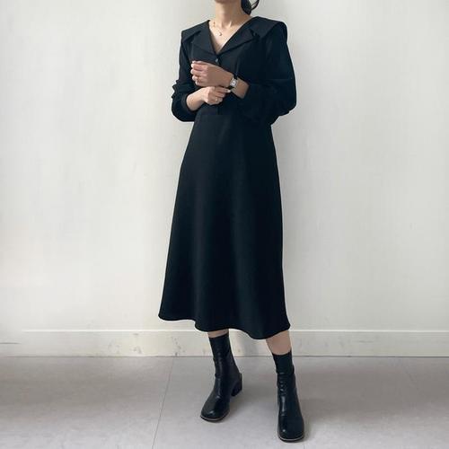 |KSO5A02|여성 배색 대카라 버튼 롱원피스 빅사이즈 봄 하객룩