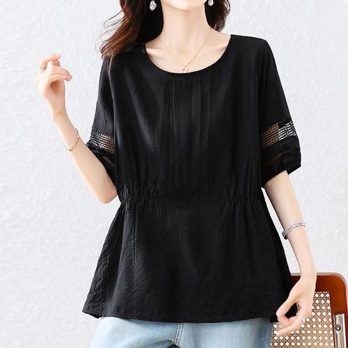 [신상오픈런]여성 보헤미안 스타일 펀칭 디자인 빅사이즈 퍼프 반팔 블라우스
