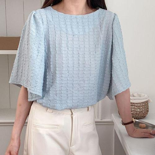 [미라클세븐]여성 파스텔 펀칭 날개소매 빅사이즈 보트넥 블라우스