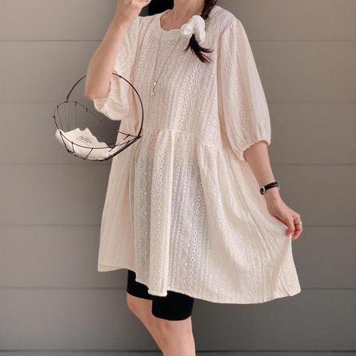나야홍 / 빅사이즈 507 둥근펀칭퍼프블라우스 DLTU912
