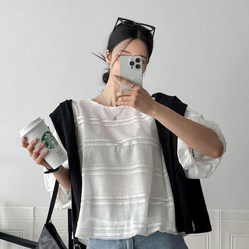 여자 펀칭 줄지 빅사이즈 잔주름 비침 블라우스