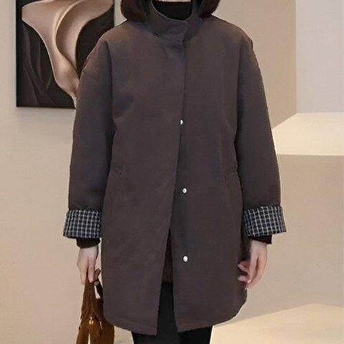 똑딱이단추 모직코트 루즈핏 캐주얼 중년여성 미디 롱 싱글 트렌치코트 가을겨울 엄마복 솔리드 아우터 빅사이즈 3xl까지