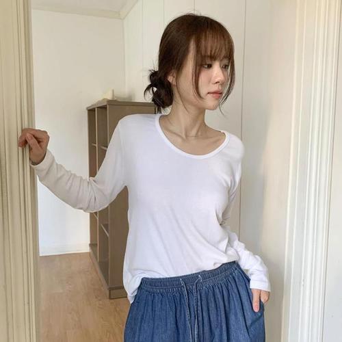 [브이와이][VY] 여자 내의 롱 빅사이즈 면원단 U넥 데일리 민무늬 긴팔티_15240712_588847